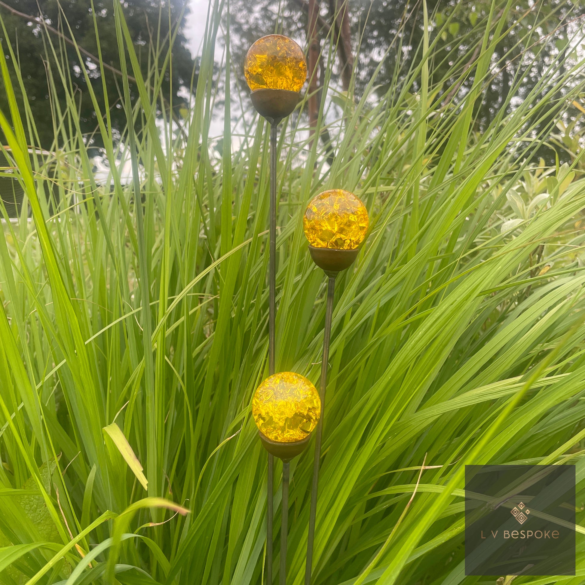 Mixed Coloured Glass Orb, Cluster of 3 - Short